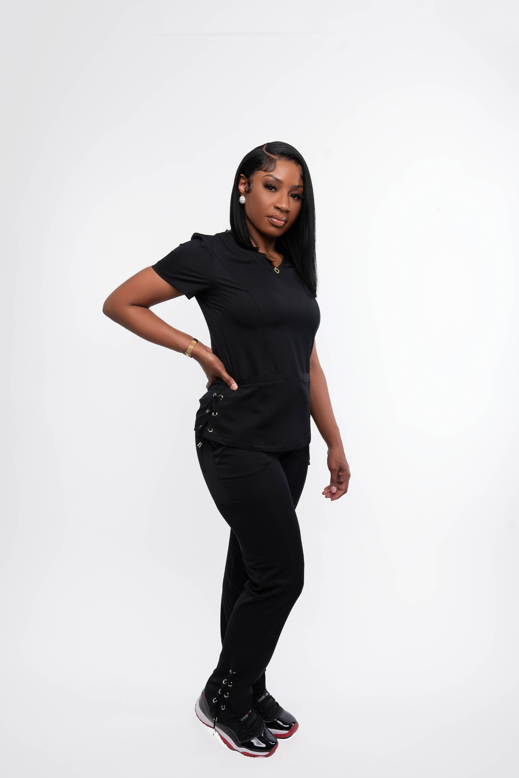 Workwear meets style with the Lace It Up Bottom, designed for healthcare professionals who value both comfort and flair. Featuring sleek lace-up accents on the sides, these scrub pants offer a fashionable twist to traditional scrubs while maintaining the functionality you need for your demanding shifts.